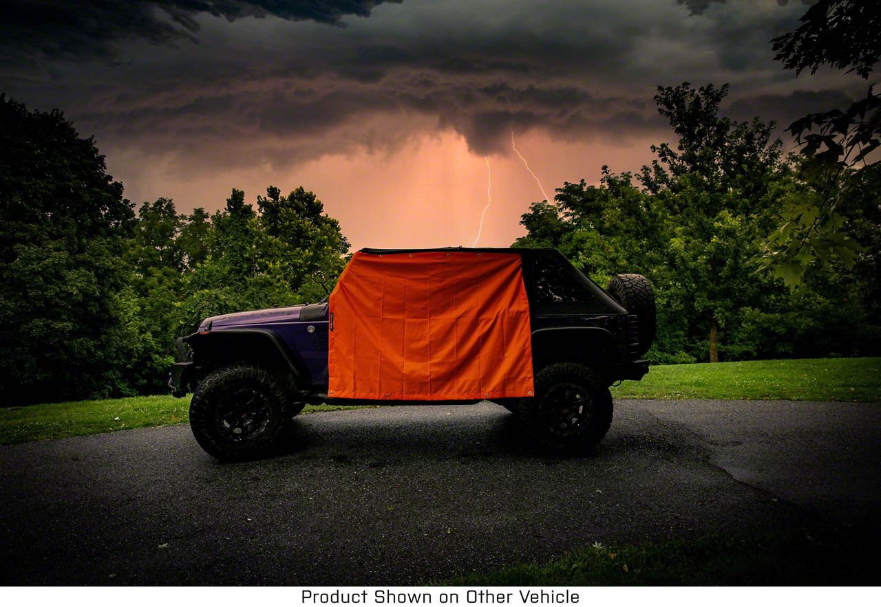 Keep Dry in a Pinch. When your Jeep's doors are off and the sky turns an ominous color, no need to panic. These Four Door Rain Curtains; Orange will keep the interior of your Gladiator dry in the event of the out-of-nowhere rainstorm.