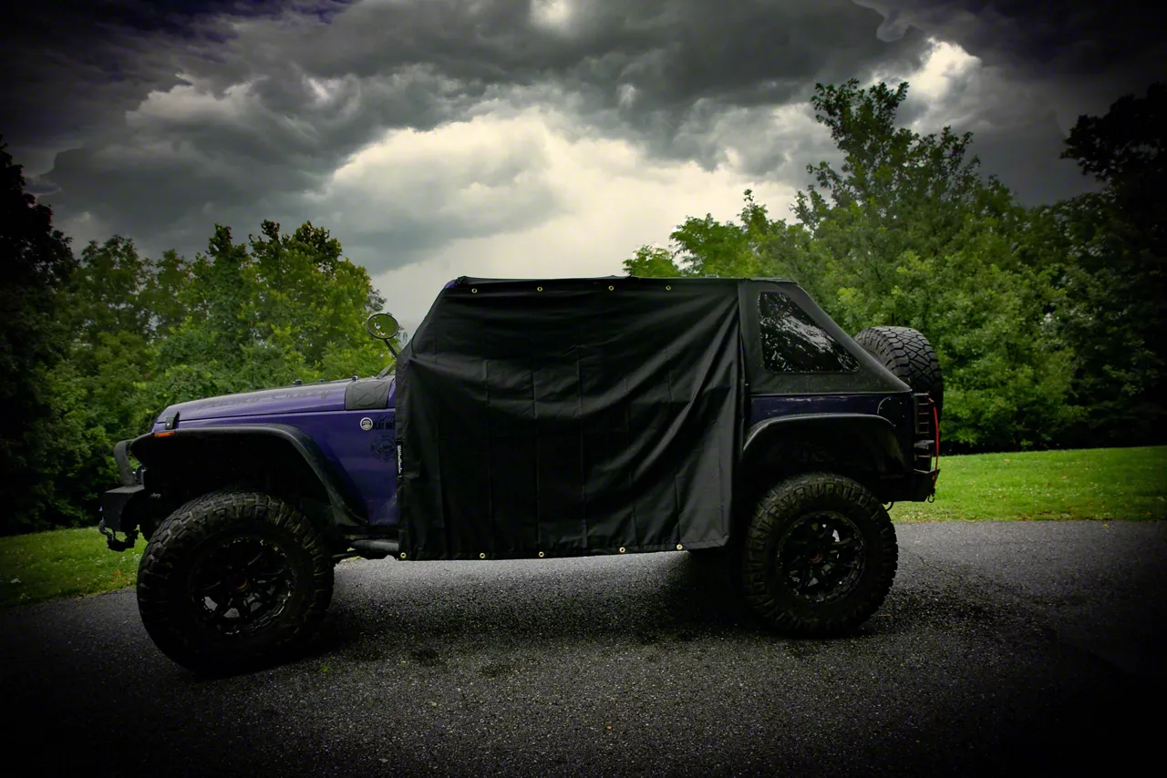Keep Dry in a Pinch. When your Jeep's doors are off and the sky turns an ominous color, no need to panic. These Four Door Rain Curtains; Black will keep the interior of your Wrangler dry in the event of the out-of-nowhere rainstorm.
