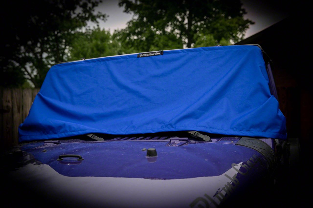 No Snow or Ice. Winter in some places can be brutal, but that doesn't mean your Wrangler has to pay the price. This Winter Windshield Cover; Royal Blue will take care of its namesake, but please don't operate your vehicle with this installed.