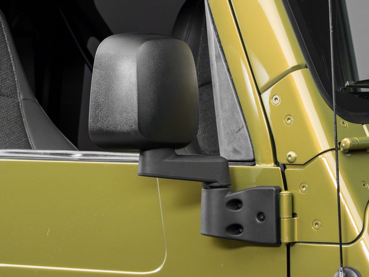 Specs. The OPR Replacement Mirror is a great choice for several purposes. Is your current mirror worn out? Broken? Damaged? Do you want to restore your Jeep to its original style and design? Then this black finished replacement mirror is the right choice for you!