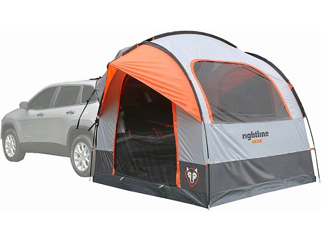 Specs. This SUV tent has a spacious rooms and can accommodate up to 4 campers. It has large doors and windows with glow-in-the-dark zipper pulls for effortless operation in low light conditions. The no-see-um mesh keeps bugs and insects out. This tent also has gear pockets that can hold a lantern or be used to store things. It comes with stuff sack for easy storage and sewn-in setup guide so you'll never be without instructions for setting up and taking down.