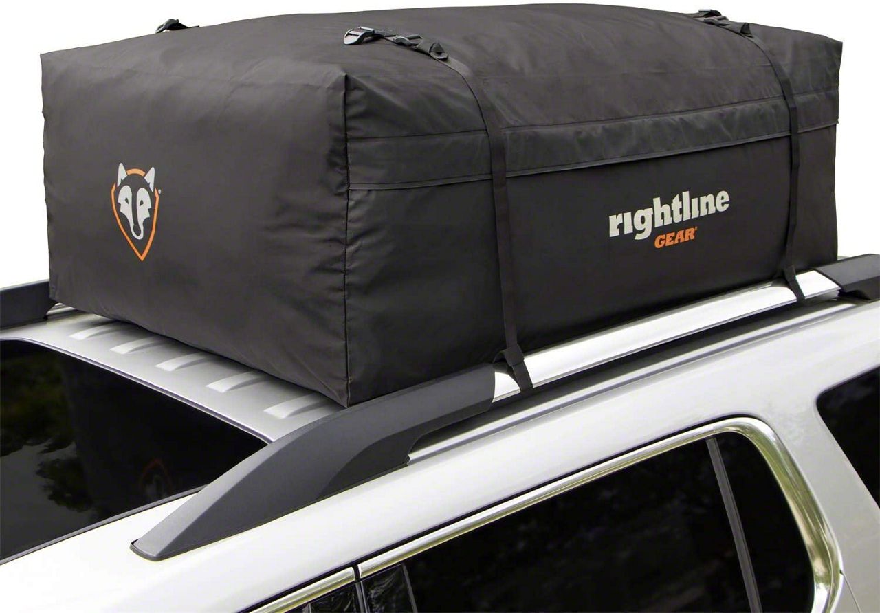 Extra Cargo Carrier. Introducing the Rightline Gear Range 3 Car Top Carrier, the ultimate solution for your cargo transportation needs. This product is a versatile car top carrier that can be attached to any vehicle with or without a roof rack. It features attachable straps that securely fasten onto the door frame weather molding, as well as provided car clips for extra security. The carrier is constructed with high-quality PVC semi-coated mesh XT, making it weatherproof and UV-resistant.