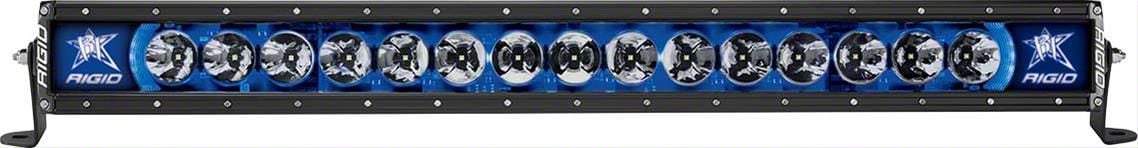 Description. The RIGID Radiance Plus LED light bar is the perfect solution for those who want RIGID's legendary quality at a level everyone can attain. Featuring RIGID's improved LED technology, the Radiance Plus light bars deliver up to 35 percent more raw lumens than before. The RIGID Radiance Plus bars are built with the same high-grade aluminum alloy housing as RIGID's legendary E-Series, but that’s where the visual similarities end. Inside, the Radiance Plus bars are feature-packed, with a black exposed circuit board, optimized forward projecting Broad Spot optics that combine the attributes of a spot and flood beam pattern. The Radiance Plus bars have built-in back-lighting available in white, amber, red, or blue. Large backlit RIGID branding plates further add to the unique look of the Radiance Plus light bar. The Radiance Plus light bars include a wiring harness and multi-trigger switch for a simple installation. The Radiance Plus LED light bars are for the customer who wants a truly custom look that RIGID is known for. Own The Night with RIGID.