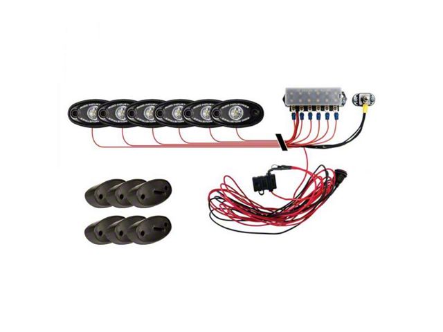 High-Performance Trail Illumination. The Rigid Industries Rock Light Kit provides bright and durable underbody lighting for serious off-road enthusiasts. Featuring six powerful blue-output rock lights, this universal-fit kit enhances visibility in low-light terrain and adds bold custom style to your build. Designed for rugged environments, it’s ideal for night trail runs, rock crawling, or as an accent lighting upgrade.