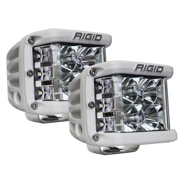 Construction and Appearance. Constructed from high-grade aluminum alloy, the Rigid Industries D-SS Pro Series LED Lights are designed for durability and longevity. The lights are finished with a durable UV resistant white powder coat, ensuring they look as good as they perform. The impact-resistant polycarbonate lens protects the lights from debris, while an integrated thermal management system and pressure equalizing vent keep them functioning flawlessly in all conditions. Their waterproof, dustproof design, and compliance with RoHS and IP68 standards, make them ideal for any off-road challenge.