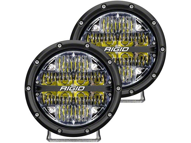 Description. RIGID introduces the all-new 360-Series family of LED lights. The optimized beam patterns project up to 8,600 raw lumens and are protected by an aluminum housing, features a blacked-out circuit board, prominent RIGID branding, and limited lifetime warranty making them the most robust and useful round lights on the market. Choose between a 4-inch or 6-inch light, preferred backlight color, and beam pattern for a customized experience and look. RIGID’s 360-Series feature beam patterns available from 17 degrees to 60 degrees, offering an option for any application. Available in 4 backlight colors: red, white, blue or amber. RIGIDs 360-Series round lights seamlessly integrate into multiple OEM applications and makes it easier than ever to Own The Night. Harness sold separately.