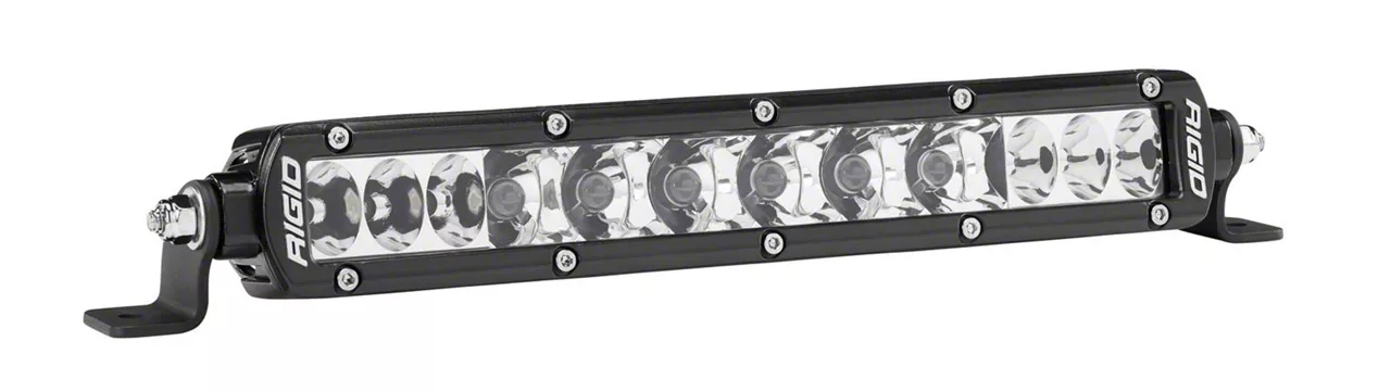High-Performance LED Lighting. The Rigid Industries SR-Series Pro LED Light Bar is built to deliver powerful illumination for off-road applications. Measuring 10 inches in length, it features a spot/driving combo beam pattern for a balance of long-range visibility and wide-area coverage, making it an ideal choice for various outdoor driving conditions.