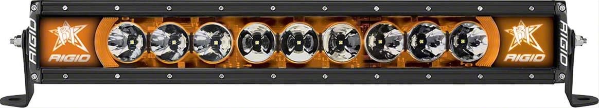 Description. The RIGID Radiance Plus LED light bar is the perfect solution for those who want RIGID's legendary quality at a level everyone can attain. Featuring RIGID's improved LED technology, the Radiance Plus light bars deliver up to 35 percent more raw lumens than before. The RIGID Radiance Plus bars are built with the same high-grade aluminum alloy housing as RIGID's legendary E-Series, but that is where the visual similarities end. Inside, the Radiance Plus bars are feature-packed, with a black exposed circuit board, optimized forward projecting Broad Spot optics that combine the attributes of a spot and flood beam pattern. The Radiance Plus bars have built-in back-lighting available in white, amber, red, or blue. Large backlit RIGID branding plates further add to the unique look of the Radiance Plus light bar. The Radiance Plus light bars include a wiring harness and multi-trigger switch for a simple installation. The Radiance Plus LED light bars are for the customer who wants a truly custom look that RIGID is known for. Own The Night with RIGID.