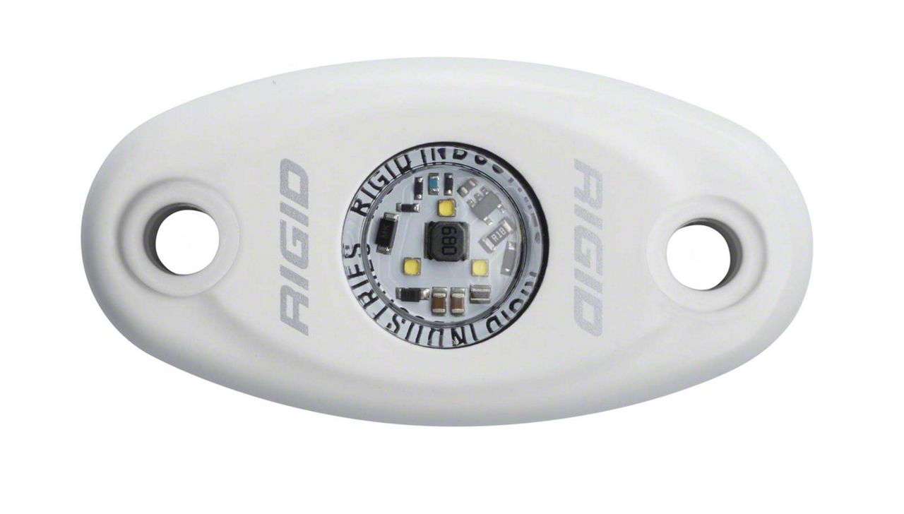 Description. RIGID's A-Series LED Accessory Light is the universal light that can be used just about anywhere. Vehicle cabs, boat cabins, work vehicle beds, under the hood of a vehicle and trunks are just a few of the places where the A-Series can provide handy bright lighting in otherwise dark environments. The A-Series has a durable compact aluminum housing and includes rubber flat-mount, a two way pad for flat mounting, and radius tube-mount adapters, which provide side or bottom wire exits to accommodate different applications. It is lightweight, waterproof, and available in a variety of different LED colors in high and low power versions. The versatility of the A-Series makes it an easy installation on almost anything.