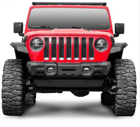 Construction and Appearance. Built from high-strength stamped steel, the bumper features a durable finish and a stubby profile for improved clearance. It integrates seamlessly with factory fog lights and supports winches up to 12,000 lbs with the optional Gen2 winch mount. Compatible with multiple add-ons—including recovery points, LED hoops, and skid plates—it offers flexibility for customized off-road setups.
