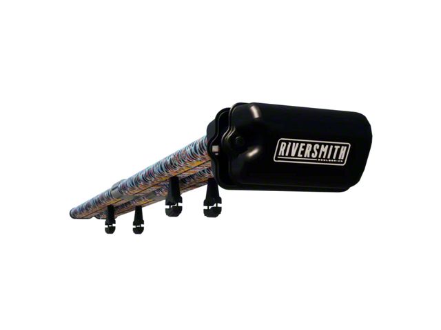 Elite Fly Fishing Gear Storage. The Riversmith 4-Banger Standard River Quiver is the ultimate solution for transporting fly fishing rods securely and stylishly. Rated as the number one fly rod roof rack, this model features a secure rear entry design and a quick release mount, making it easy to access and remove your rods. Sized at 10 feet by 4 inches, it includes a stylish DeYoung Edition vinyl wrap, enhancing its visual appeal while offering protection. Built to withstand shock, wind, and impact, this rod holder ensures your equipment remains safe under all travel conditions.