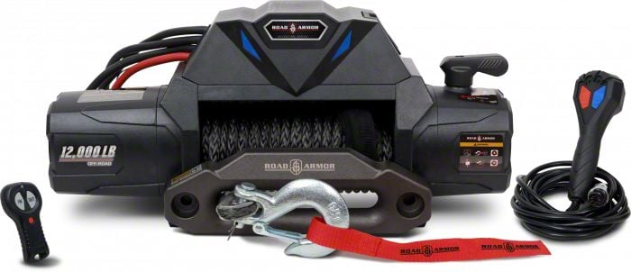 Power and Performance. Get your vehicle off-road ready with the Road Armor 12,000 lb. Integrated Winch with Synthetic Rope. You can rely on this 12V DC electric winch for all your recovery needs, especially during off-road driving, with its pulling capacity of 12,000 pounds.