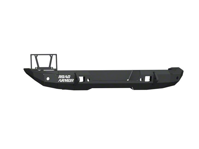 Highly Durable Steel. Road Armor engineered the Stealth Mid-Width Rear Bumper for the most aggressive off-road application. It is made of highly durable 0.18-inch steel with 0.25-inch gusseting and internal bracketry for maximum strength and lasting performance. This durable bumper also features an impressive textured black powder-coated finish that delivers superior protection against chips, rust, and other damage caused by corrosion.