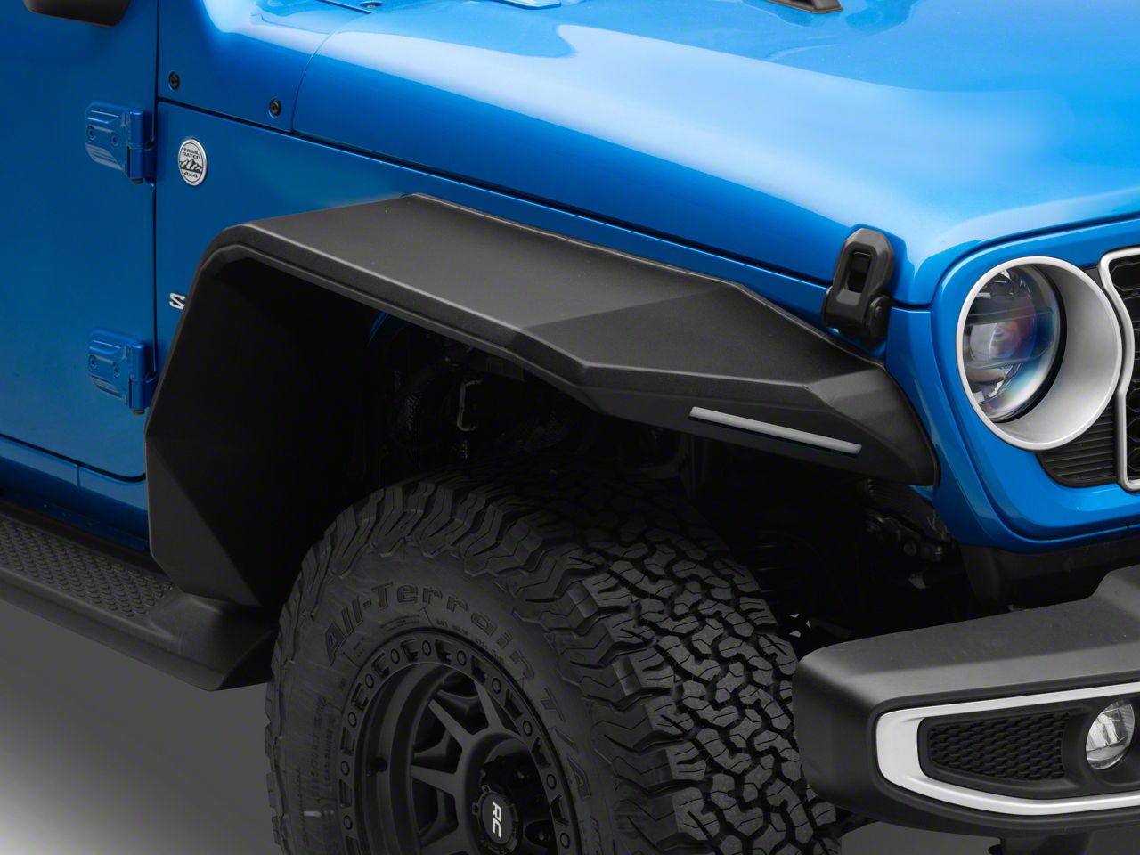 Application. These Road Armor Stealth Wide Front Fender Flares with Switchback LED DRL and Textured Black finish are created to fit 2018-2026 Jeep Wrangler JL models.