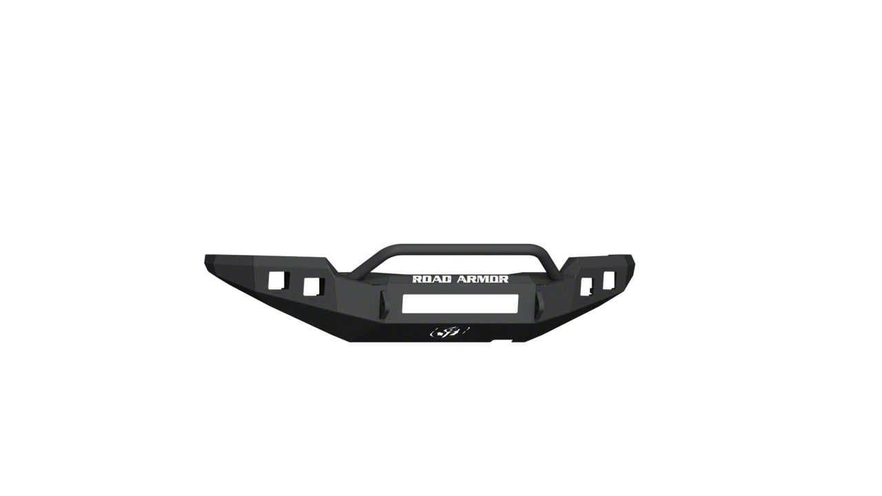 Rugged Style. Looking to give your truck a whole new attitude? The Road Armor Stealth Non-Winch Front Bumper with Pre-Runner Guard; Textured Black features aggressive styling that’s sure to turn heads everywhere you go. Proudly made in the USA and Texas strong, this non-winch front bumper with pre-runner guard is welded by Craftsman inside and out and guaranteed to make an impact.