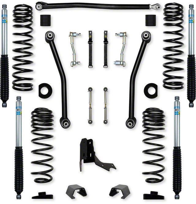 Durable Construction and Performance Features. Constructed from high-grade, hard-wearing materials, this suspension lift system includes tuned triple-rate coils and spring correction seats that address vehicle lean and enhance the rear roll center. Furthermore, the included Bilstein 5100 shocks are renowned for their durability and performance, providing superior damping and stability across various terrains.