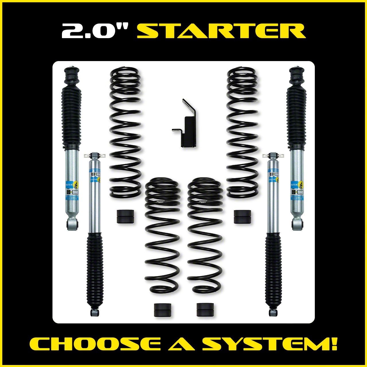 Durable Coil Springs. At the core of this Rock Krawler 2-Inch Starter Suspension Lift Kit are Rock Krawler’s high-quality coil springs, engineered to resist sagging and provide consistent performance over time. These springs are tuned to deliver a smoother, more controlled ride, giving you the flexibility to handle both off-road obstacles and highway cruising with ease.