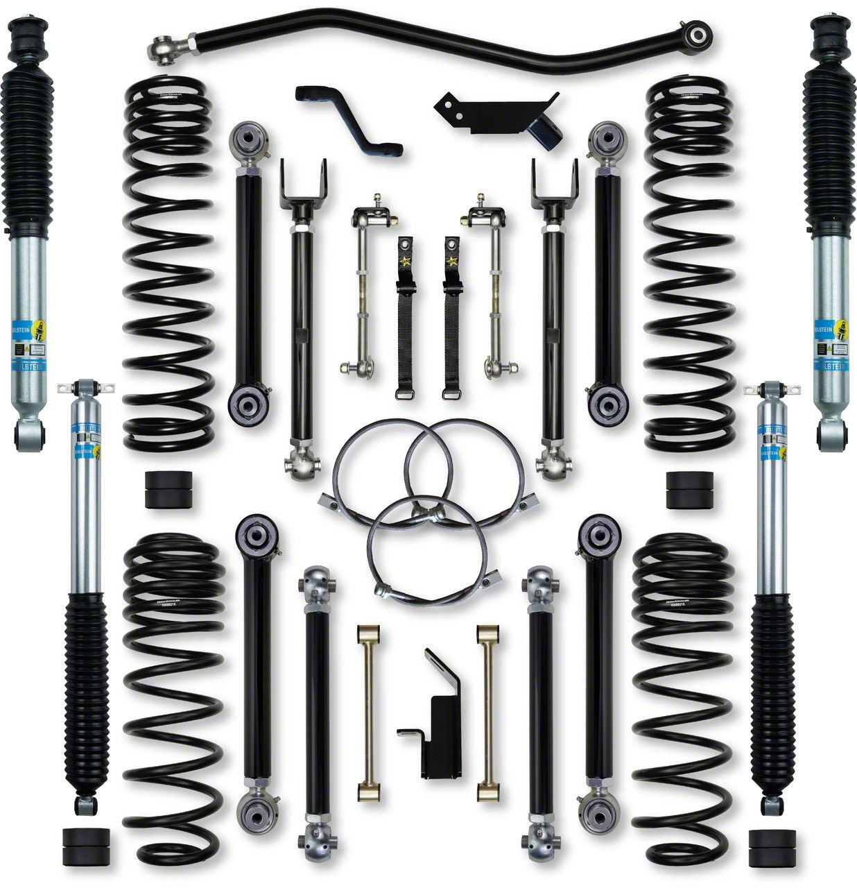 The Rock Krawler Suspension 2.0" X-Factor Short-Arm System is specifically designed for JL Wrangler owners who want a complete system, bolt-in installation, and the best articulation of any short-arm kit on the market. Our system proves its durability and off-road performance every time you hit the streets or trail! Our industry leading, X-Factor Series, adjustable upper and lower control arms offer a total of 95 degrees of misalignment when paired with our Pro-X Krawler Joints and Adventure Series joints. The inherent bind in a factory LJ control arm is greatly reduced. Our maintenance free "Adventure Series" joints are found in your front and rear control arms at the frame connection, while our "PRO Krawler Joints" tie in your axle connections. With so much adjustability, it allows you to precision tune the LJ's caster and pinion angle front and rear. Driving you home with the most comfortable ride possible in a Wrangler, are our TRIPLE-RATE coils. All 4 coils work together to achieve excellent on-road comfort that we feel is better than the OEM linear rate springs. The coil itself is built with the proper "Free-length" for off-road articulation and stays firmly seated in the coil bucket (as long as a proper length shock is installed), and overall a very controlled reaction to bumps, rocks, sand, mud and whatever else you can manage to throw at them! All Rock Krawler LJ systems include correction pads that reduce the spring bow inherent in the factory set up. The included front track bar corrects the suspension geometry to center the front axle, ensuring uncompromised on-road handling. When we design a system, our goal is to provide you with the most comprehensive solution and the best geometry, install exceptional value, and be the foundation for every adventure whether it be on the Street, In tow, or down a Trail! Thank you for considering Rock Krawler Suspension.