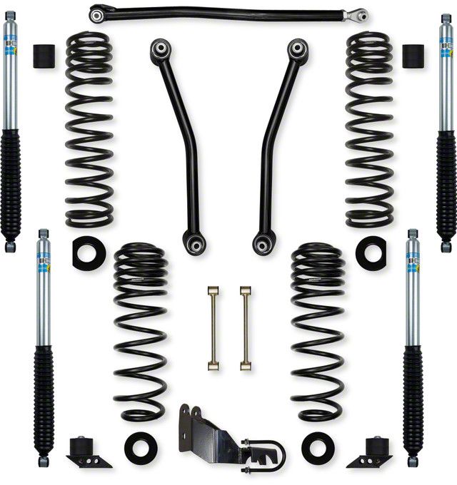Construction and Appearance. This suspension lift system features front and rear Bilstein 5100 shocks, paired with non-adjustable control arms that boast 100% service-free joints. The triple rate coil springs are designed to stay firm and controlled, resistant to all elements, ensuring a blend of durability and premium quality.