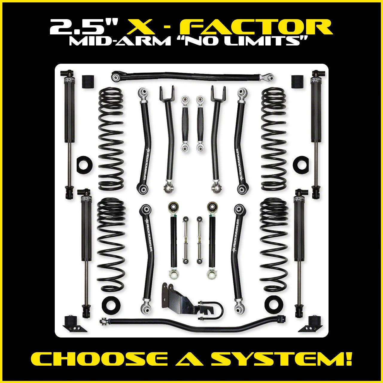 Rock Krawler 2.5" X-Factor "No Limits" Mid-Arm Suspension System for Jeep Wrangler JL (Gas Models)