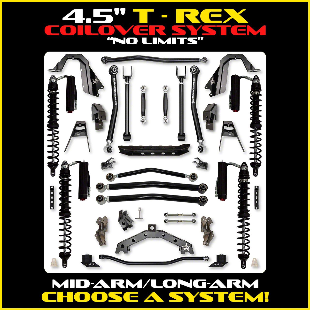 Rock Krawler 4.5" T-REX COILOVER "No Limits" Suspension System for Jeep Wrangler JL (Gas Models)