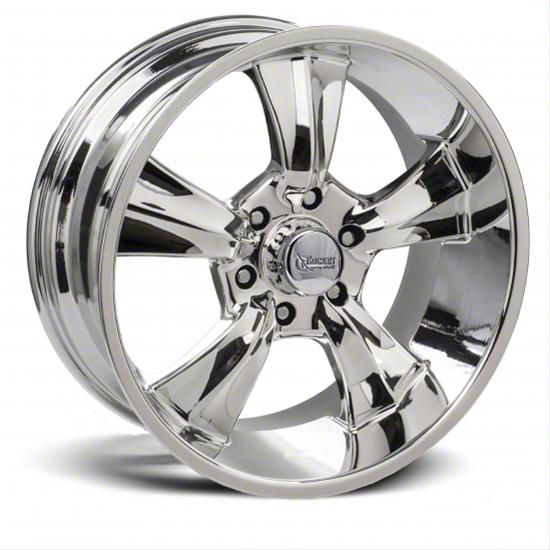 The 20x9 Rocket Racing Wheels Booster 6 Chrome 6-Lug Wheel has a chrome finish that is accomplished in a 3-step plating process - copper, nickel, then chrome.