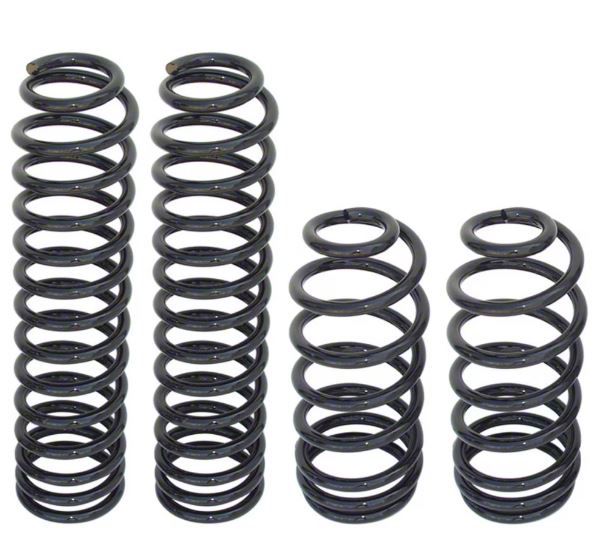 Solid Build Quality. These front and rear coil springs are constructed from quality spring steel for maximum strength and durability. Furthermore, these coil springs are machine-formed to exact specifications, providing a factory-grade fit when installed. Finally, these springs are finished in a protective black powder coating that also gives them a fierce style.
