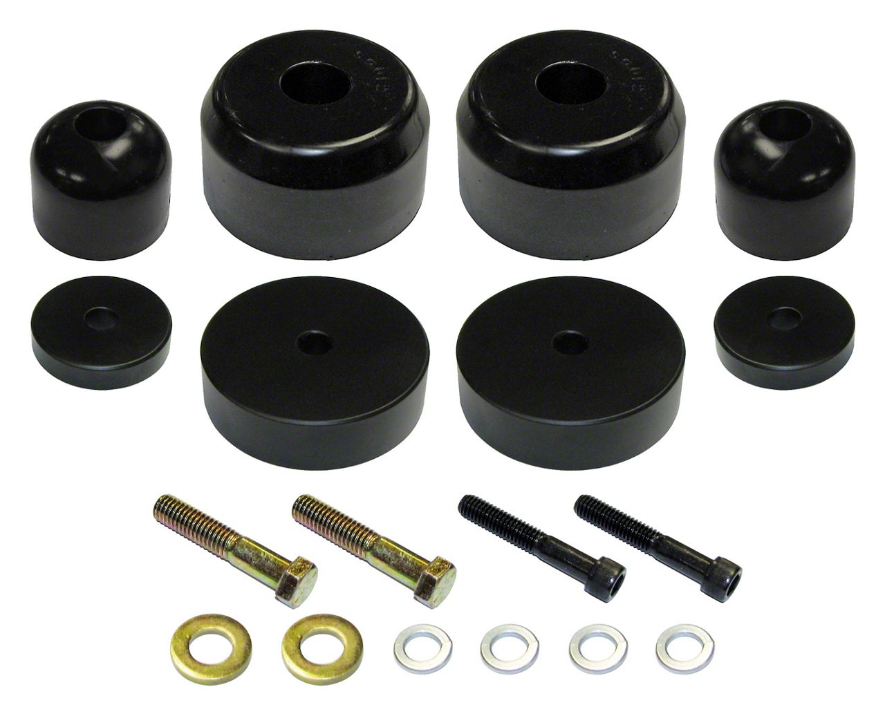 Installation. Installing the RockJock Front Bump Stop Kit on your vehicle is easy and requires no drilling.
