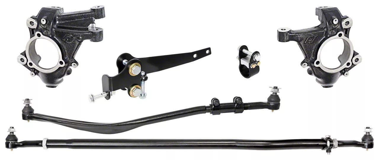 Improved Ride Quality and Handling. Made for the Jeep Wrangler JL, this RockJock High Steer Knuckle Kit raises the tie rod 2-3/4 inches and the drag link by 2-1/2 inches leading to improved ride comfort and vehicle handling. This kit also includes a stabilizer tie rod clamp and a track bar geometry relocation bracket to stabilize and fix the reworked geometry.