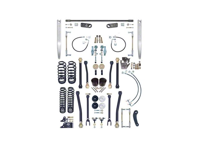 Kit Contents. This RockJock Johnny Joint 4-Inch Suspension Lift Kit contains: 8 Johnny Joint adjustable control arms; 4 progressively-wound coil springs; front urethane bump stop kit; rear bump stop spacers; rear coil spring retaining kit; front and rear stainless braided extended brake line kits; front and rear track bar relocation kits; relocation kit for the tops of front shocks; relocation kit for the bottoms of rear shocks and a dropped pitman arm.