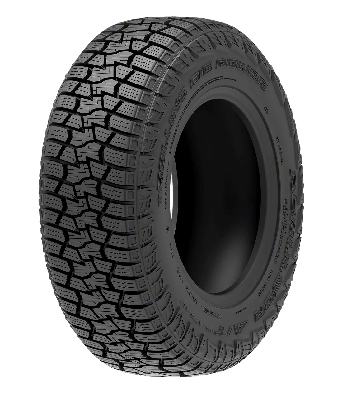 The Rolling Big Power Repulsor A/T Plateau is a premium all-terrain tire engineered for SUVs, light trucks, and crossovers. Designed for bold drivers who demand versatility, the Repulsor A/T Plateau delivers exceptional durability, superior all-season traction, and reliable performance, ensuring confidence on every terrain for all your adventure needs.Features & BenefitsAll-Season Traction: Sawtooth groove edges and high-density sipes enhance handling performance and maintain grip on wet, dry, snow, and ice surfaces3PMSF Winter Certification: Choose confidence in severe winter conditions — engineered to pass the demanding 3-Peak Mountain Snowflake test for reliable snow and ice tractionAdvanced Tread Design: Computer-optimized void ratio and full-depth tread design provide balanced handling and excellent water evacuation at any speedDurable Tread Compound: Specially formulated advanced all-terrain compound and optimized contact shape for extended tread life and even wear patternsVersatile Applications: Suitable for a wide range of driving conditions, from muddy trails and rocky terrain to snowy roads and highway cruisingReinforced Construction: Aggressive blade-style sidewall pattern resists damage from stones and sharp debris while boosting off-road handling and contro