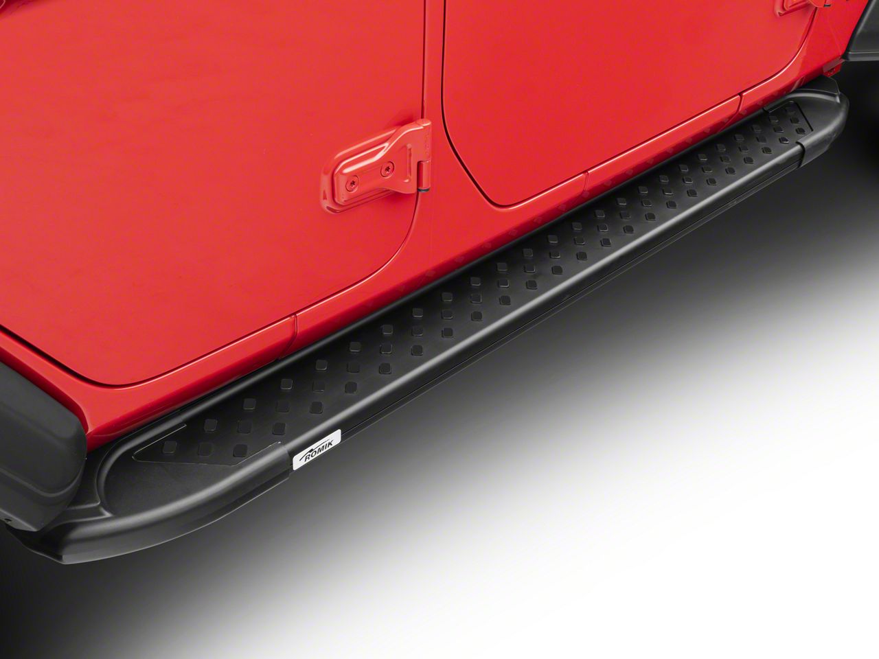 Application. Romik’s Black RAL-B Running Boards are compatible with all 2018-2026 4 Door Jeep Wrangler JLs.
