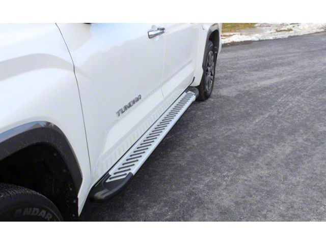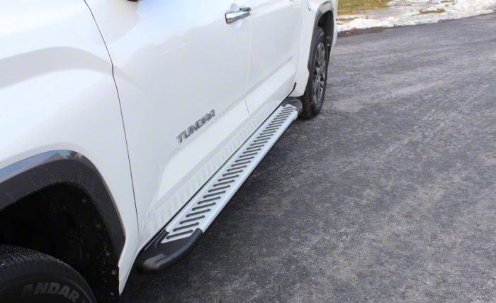 Skid-Resistant Board. You don’t have to worry about your running boards always getting scratched by shoes or gutters with the Romik RAL-T DRP Running Boards in Silver. It is designed to be heavy-duty and extra protected while keeping your Tundra looking sleek and ready for adventure.