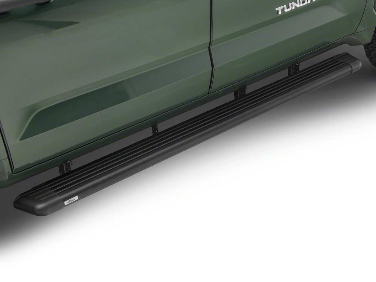 Six-Inch Wide Steps. Moreover, these running boards provide a stable 6-inch wide step area that is guaranteed to remain stable and durable. Plus, the sleek black powder coat finish gives an extra boost of style and elegance that’s sure to catch attention. Upgrading with these full-length RB2-T DRP Running Boards will ensure your Toyota Tundra stands out from the pack. Installing them is fast and easy, so, you can be driving in style in no time.