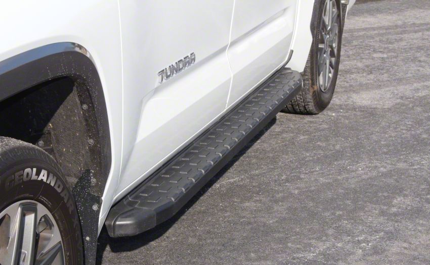 Sufficient Weight Distribution. These Romik REC-TB DRP Running Boards are a supreme accessory to add to your Tundra. By installing these boarding platforms, you also grant your rocker panels and undercarriage extra protection from rubble and road debris. These boards also provide slip-proof entry thanks to their textured padding and non-skid textured platforms.