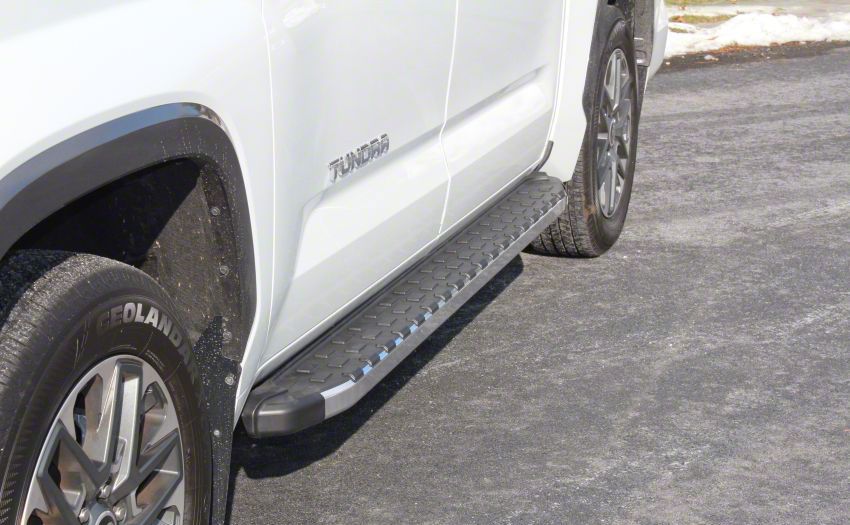 Application. The Romik REC-TP DRP Running Boards; Polished fit all 2022-2026 Tundra CrewMax models.