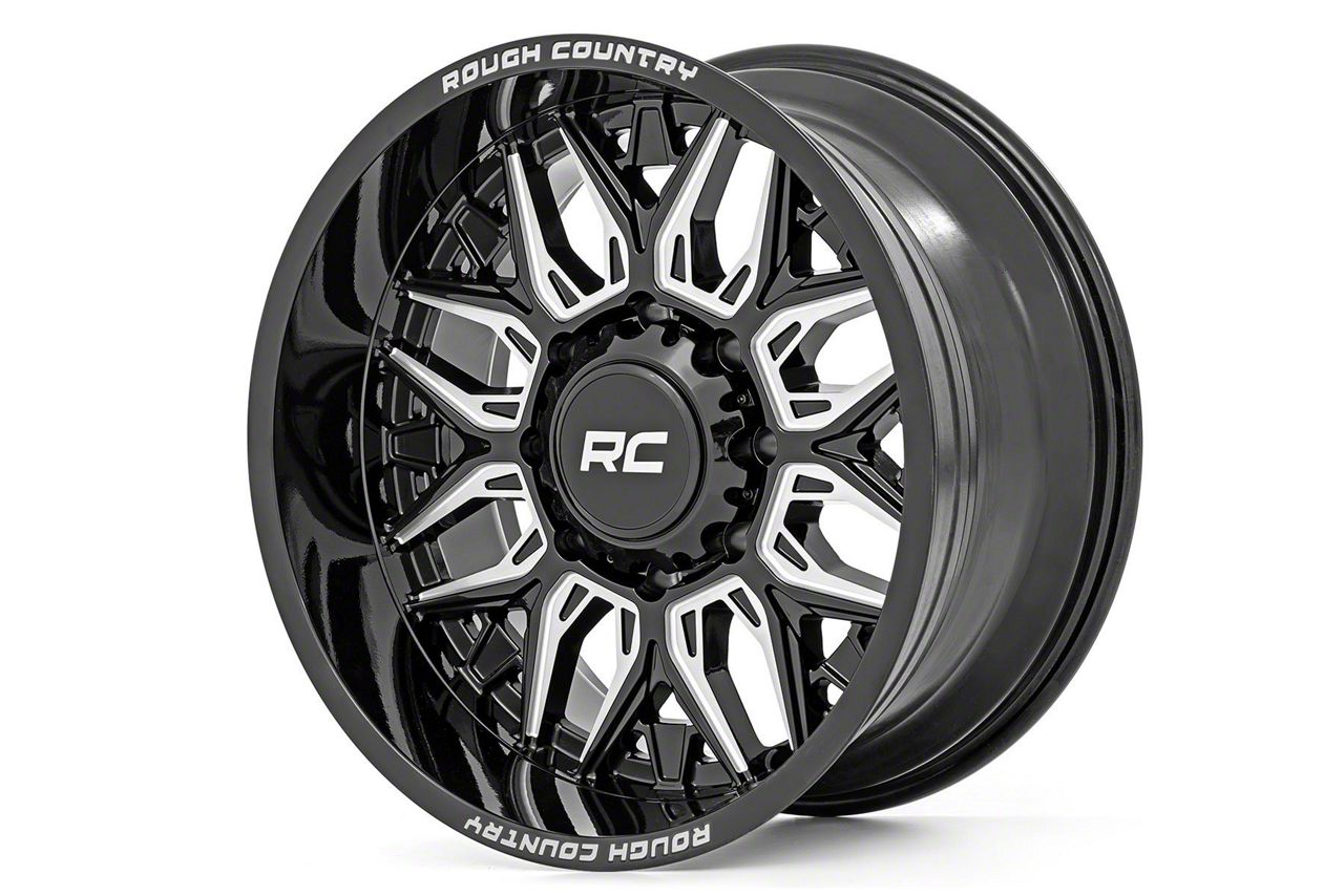 Rough Country 86 Series Gloss Black Milled 6-Lug Wheel; 20x10; -18mm Offset The Rough Country 86 Series Gloss Black Milled 6-Lug Wheel combines a sleek, sophisticated design with premium construction that enhances the visual appeal and complements a wide range of vehicle styles. This wheel is perfect for those seeking to make a bold statement while maintaining elegance and robustness.