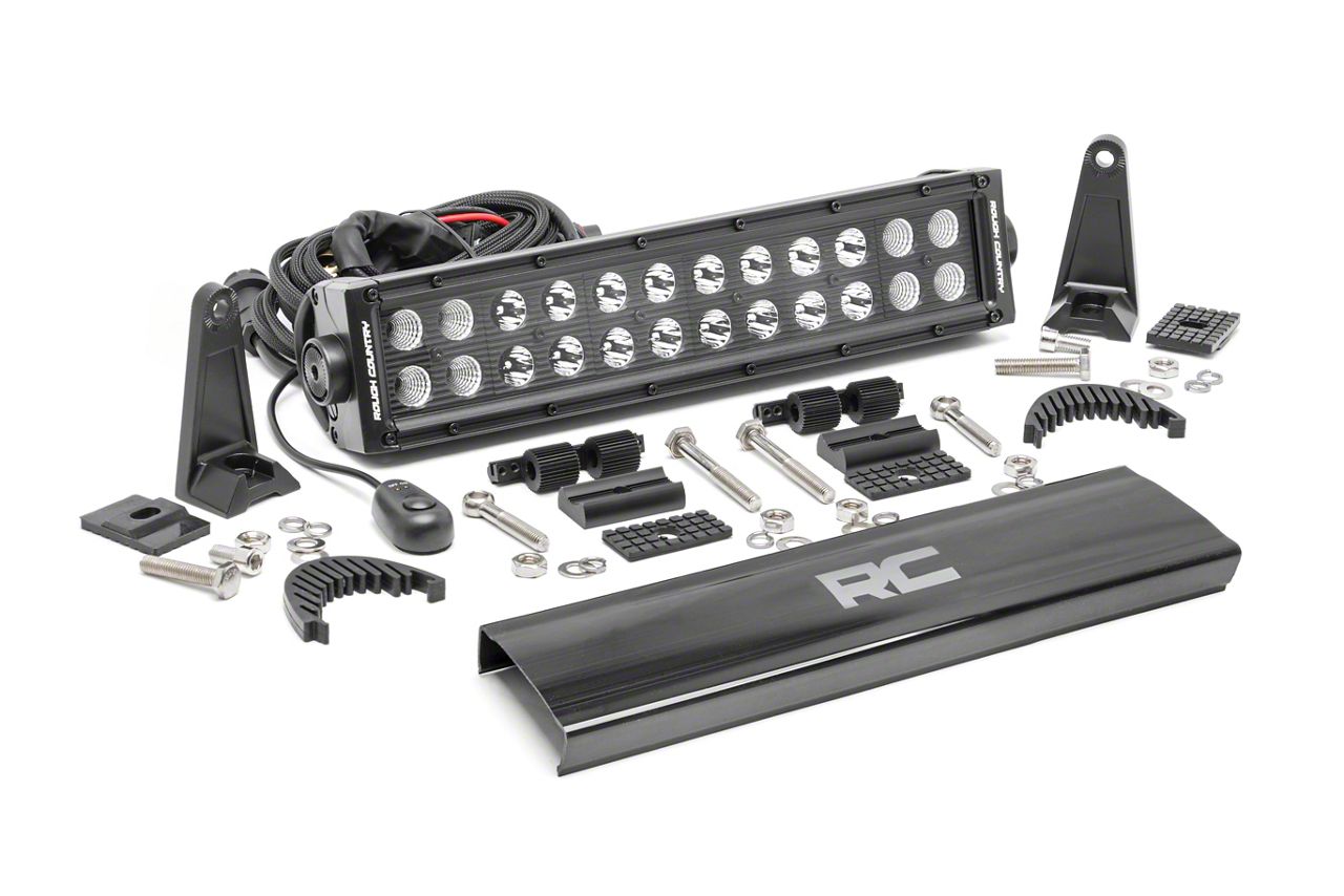 Powerful Lighting. Rough Country's 12 inch Black Series Dual Row LED Light Bar Flood/Spot Combo is designed to provide ideal off-road illumination for your Toyota Tacoma, even boasting multiple mounting options for a customized lighting solution. The bar easily pierces through fog, rain, snow, and darkness to improve your visibility and features a stylish black panel design and noise silencers that snap over the cooling fins to reduce hums, whistles, and other wind noise.