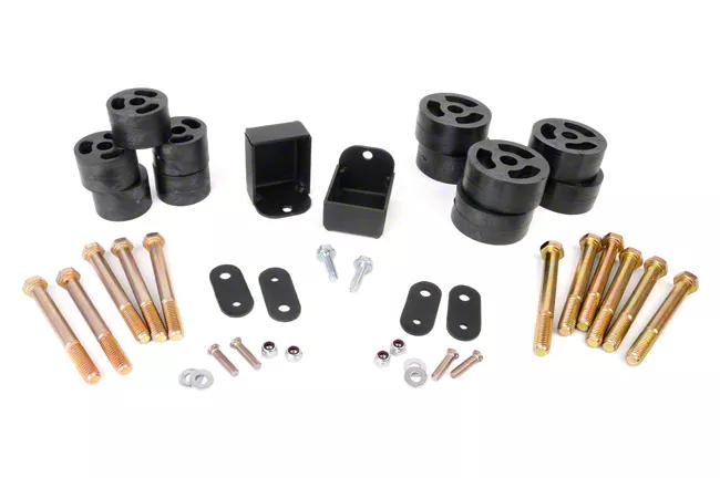This Rough Country Body Lift provides a full 1.25" of additional tire clearance, as opposed to the standard 1" provided by most other manufacturers. The 1.25" spacers nest with the factory body mounts keeping the body properly aligned with the frame. This design provides lift while retaining the noise and vibration canceling characteristics of the factory mounts.