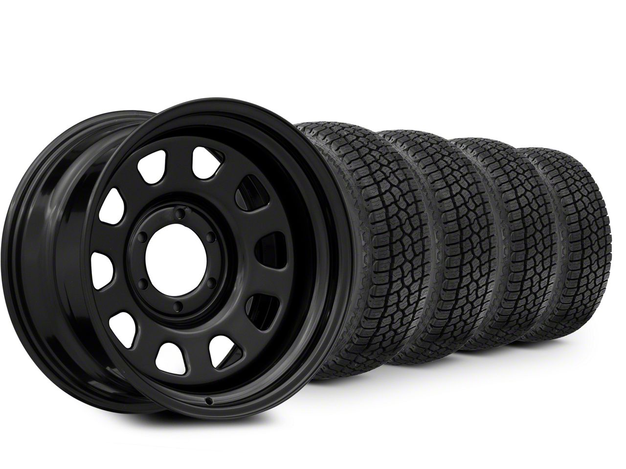 Mounted and Balanced Wheel and Tire Kit. This wheel and tire combo kit features (4) 17x9 Steel Gloss Black 6-Lug Wheels and (4) Milestar All-Terrain Patagonia AT/R 285/70R17 tires that have been put together into an easy to buy kit that arrives to your door already mounted and balanced ready to be installed on your vehicle.