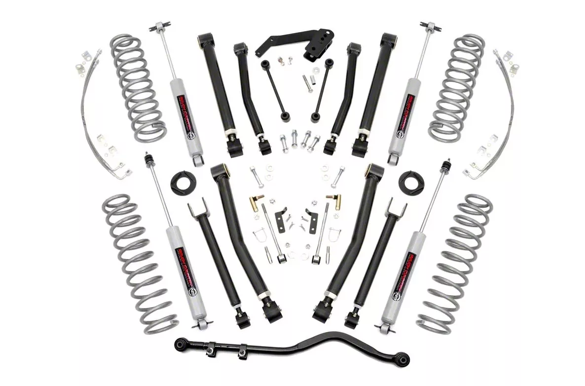 Use. The Rough Country 4-inch X-series Suspension Kit provides extra ground clearance and also allows you to fit larger tires on your Jeep. The kit also imparts stability while driving through rough terrains.