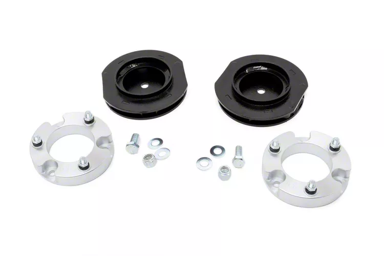 Off-Road-Quality Upgrade. Whether you're an avid off-roader or simply looking to improve the appearance and functionality of your vehicle, the Rough Country 2-Inch Spacer Suspension Lift Kit (Aluminum) is the perfect upgrade for you. This kit is designed to provide your vehicle with an additional 2 inches of lift, making it ideal for off-road adventures and rugged terrain. Aside from this kit giving your ride a more aggressive and rugged look, it will also allow you to install larger tires and wheels, providing even more off-road capabilities.