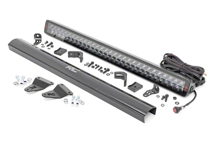 Powerful and Discreet Lighting Solution. The Rough Country Spectrum Series LED Light Bar Grille Kit enhances your vehicle’s lighting capabilities with its sleek, hidden design. Measuring 30 inches in length and delivering a powerful 180 watts, this light bar is perfect for off-road adventures and nighttime driving.