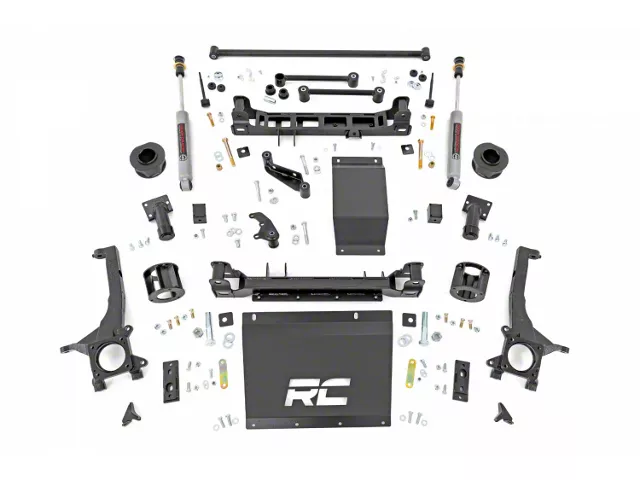 Gets the Job Done. The Rough Country 4.50-Inch Suspension Lift Kit is designed to provide your vehicle with an impressive 4.5 inches of additional lift, significantly increasing ground clearance. This extra clearance not only enhances your off-road capabilities but also allows you to accommodate larger tires for better performance and appearance. The kit also levels out the front and rear of your vehicle, ensuring that it maintains proper alignment and a balanced look. Despite the substantial lift, this kit is engineered to retain your vehicle's factory ride quality, delivering a smooth and comfortable driving experience even on rough terrain.