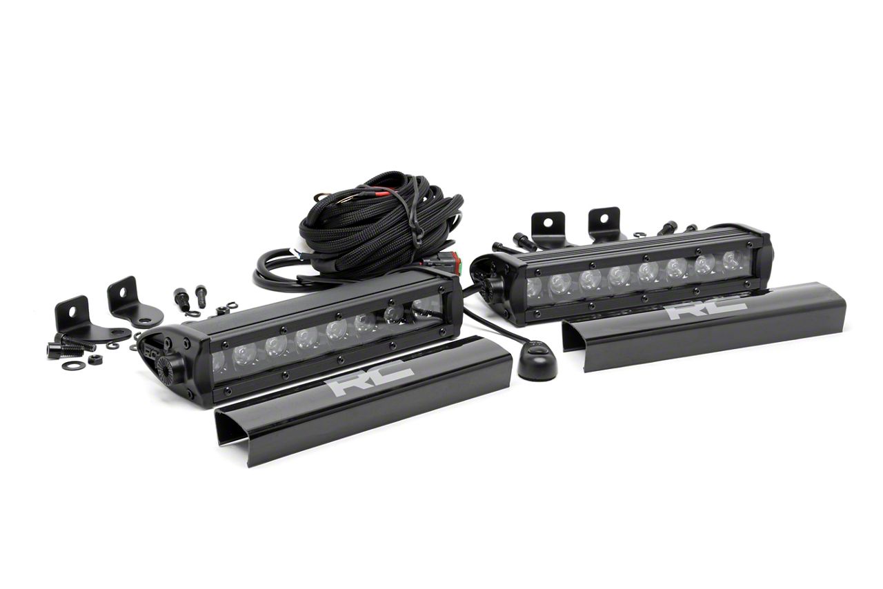 Customized Lighting Solution. Rough Country's Pair of 8 inch Black Series Single Row LED Light Bars Spot Beam are designed to help you and your Toyota Tacoma take on the trails with confidence, even in low visibility conditions. With a black panel design for unbeatable style and multiple mounting options for a beam that is tailored to your application, this pair of light bars is guaranteed to provide effective form and function.