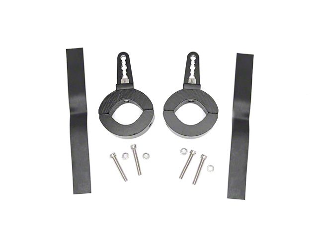 Rough Country Delivers. Mount your lighting system at versatile angles with the Rough Country Adjustable LED Light Mounting Clamps for 1.5-2 Inch Tubing. Designed for use on 1.5 to 2 inch tubing, these mounting clamps are built to perform and constructed using 6061 black anodized aluminum, allowing rotation up to 360 degrees for versatility in lighting.