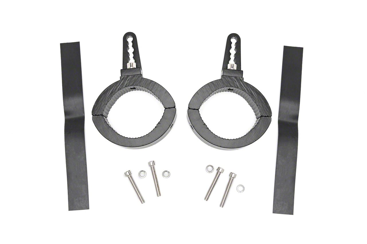 Customized Lighting. If you're looking to create a customized mount for your aftermarket lights, look no further than Rough Country's Adjustable LED Light Mounting Clamps for 2.50-3 inch Tubing. These mounting clamps are designed to work with everything from individual cube lights to a 30-inch light bar and are adjustable to fit a range of different sized lights and mounting points, guaranteeing a perfect fit every time. These mounting clamps allow you to attach your standard size LED lights wherever you want, including the roll cage, bumper bar, roof rack, or any other tubular bar. The clamps even boast a fully rotational design so that you can adjust the lights 360 degrees for a customized angle.