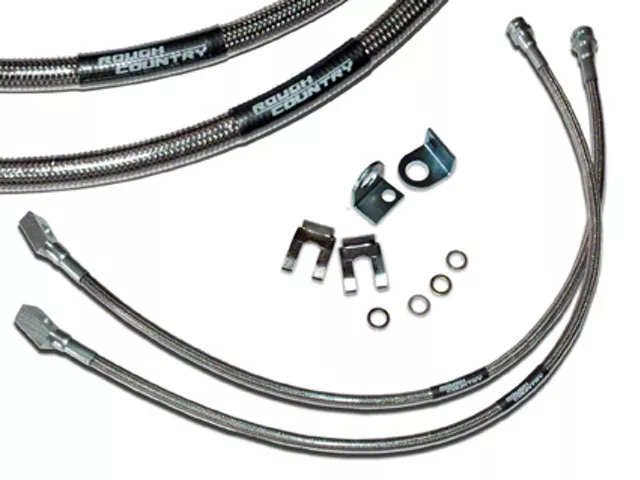 Rough Country Suspension Rear Extended Stainless Steel Brake Line for 4 to 6-Inch Lift (87-06 Jeep Wrangler YJ & TJ)