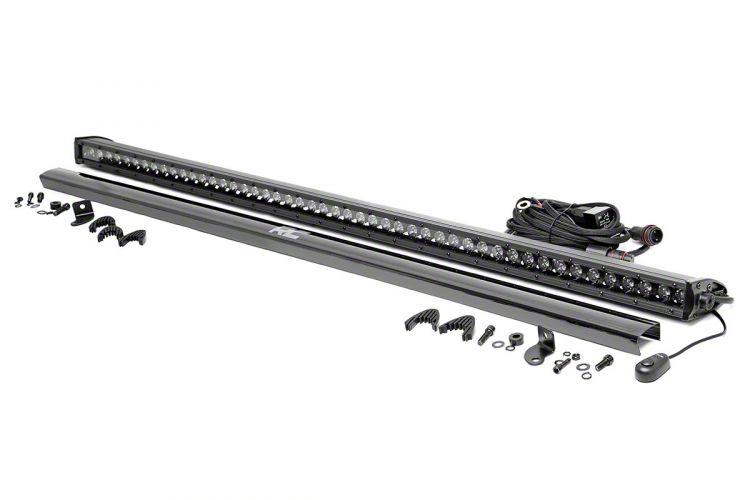 Stylish Performance. Tackle any terrain at night with this Rough Country 50-inch Black Series Single Row LED Light Bar - Spot Beam. It emits 19,200 lumens of brightness and has a spot beam pattern for targeted bright light. This LED light bar is for off-road use only, and it has an IP67 waterproof rating so it can be used in any weather.