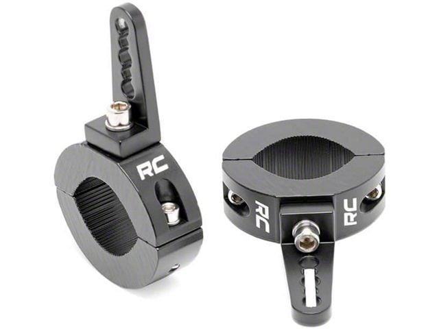 Rough Country Delivers. Mount your lighting system at versatile angles with the Rough Country Adjustable LED Light Mounting Clamps for 1.5-2 Inch Tubing. Designed for use on 1.5 to 2 inch tubing, these mounting clamps are built to perform and constructed using 6061 black anodized aluminum, allowing rotation up to 360 degrees for versatility in lighting.